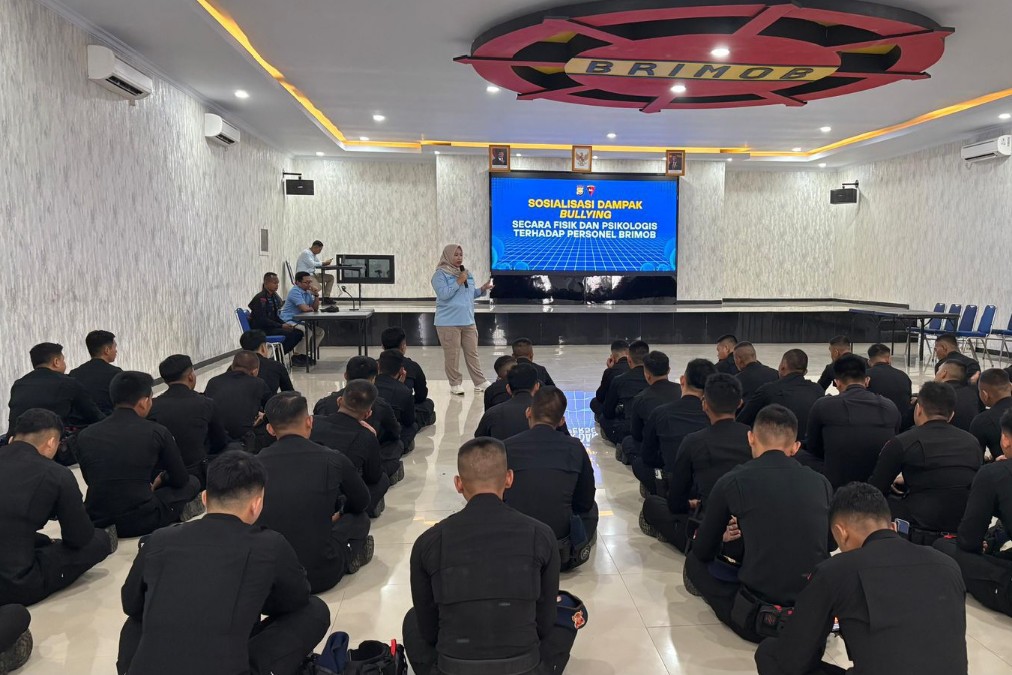 BENGKULU – Biro SDM Polda Bengkulu melaksanakan sosialisasi tentang dampak bullying secara fisik dan psikologis terhadap personil Brimob Polda Bengkulu di Aula Pesat Gatra Satbrimobda Bengkulu Kegiatan ini diikuti oleh personel Brimob Polda Bengkulu dari Letting Angkatan 45 sampai 52 yang berjumlah 60 personel