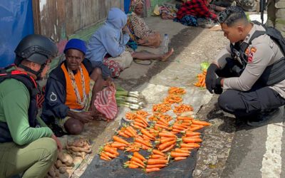 PANIAI, PAPUA TENGAH – Personel Operasi Damai Cartenz melaksanakan kegiatan belanja hasil bumi sekaligus menyapa mama-mama penjual sayuran di Jl. Enarotali, Distrik Paniai Timur, Kabupaten Paniai, pada Sabtu (27/9/2025) pukul 08.00 WIT hingga selesai. Kegiatan yang dipimpin oleh Ipda Syahrir Mahyudin, S.H., bersama Bripda Irgi Alamsyah ini bertujuan untuk mendukung perekonomian lokal sekaligus mempererat hubungan…