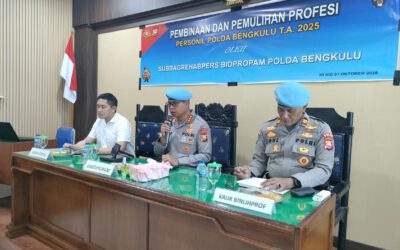 BENGKULU – Kepala Bidang Profesi dan Pengamanan (Bidpropam) Polda Bengkulu Kombes Pol. Sugeng Pujihartono, S.E., M.H., memimpin secara resmi kegiatan Pembukaan Pembinaan Pemulihan Profesi Personel Polda Bengkulu Tahun Anggaran 2025, yang digelar pada Senin (20/10/2025) di ruang sidang Bidpropam Polda Bengkulu. Dalam sambutannya, Kombes Pol. Sugeng menegaskan pentingnya ketaatan terhadap aturan dan kode etik profesi…