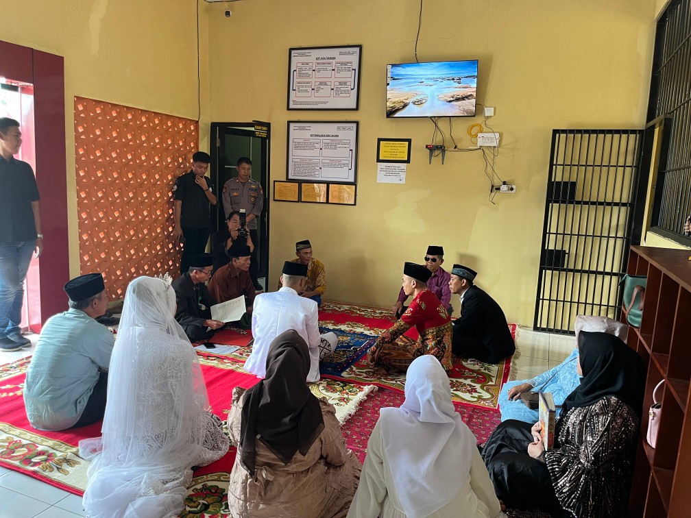 Seorang tahanan berinisial RP melangsungkan akad nikah dengan pujaan hatinya CWK, di dalam gedung Satuan Tahanan dan Barang Bukti (Sat Tahti) Polres Bengkulu Selatan.