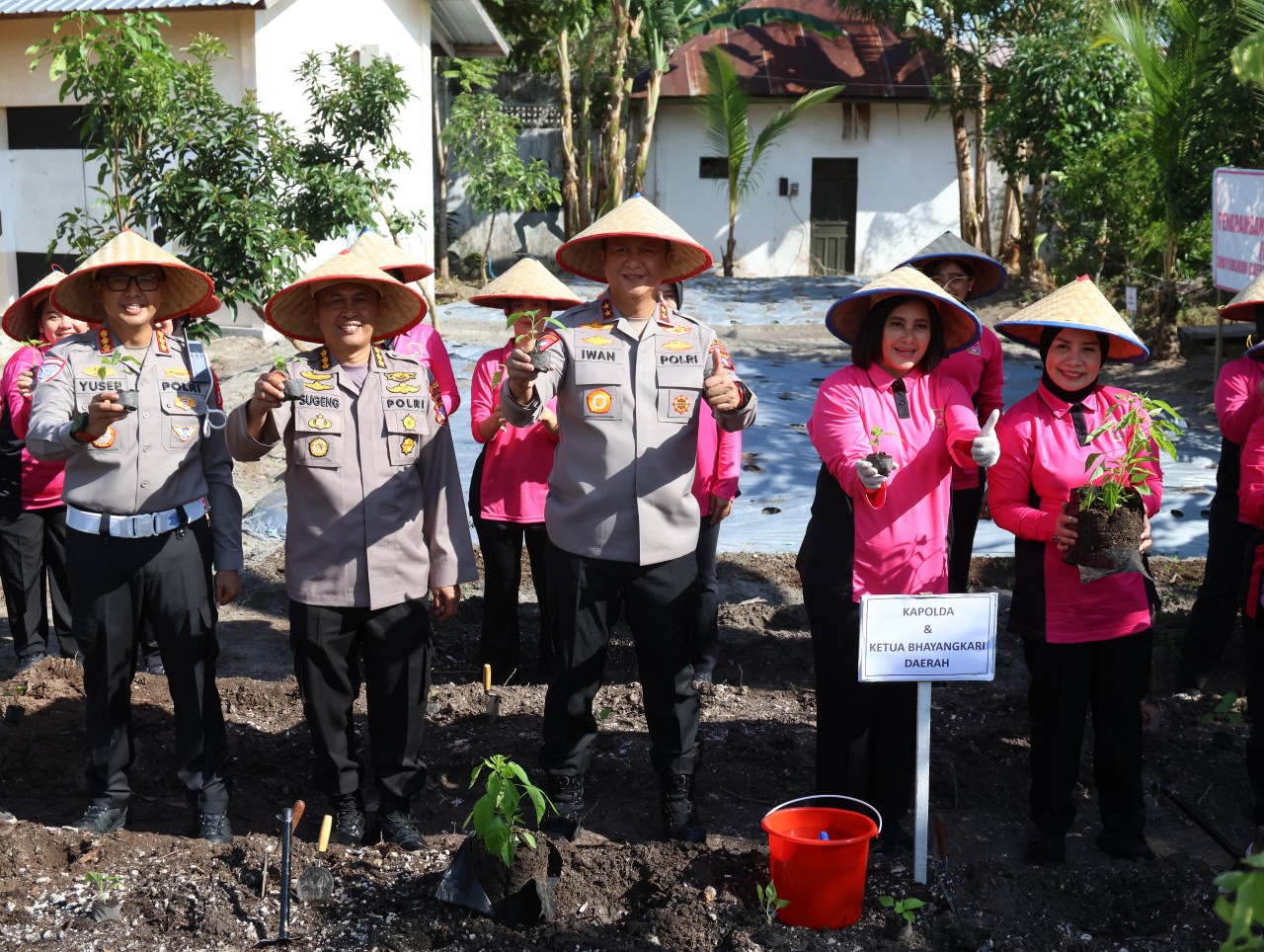 PALANGKA RAYA – Kapolda Kalimantan Tengah Irjen Pol Iwan Kurniawan, S.I.K., M.Si. bersama Ketua Bhayangkari Kalteng Ny. Maya Iwan Kurniawan, melaksanakan kegiatan panen sayuran di lahan Pekarangan Pangan Lestari (P2L), Mapolda setempat, Selasa (26/8/2025).