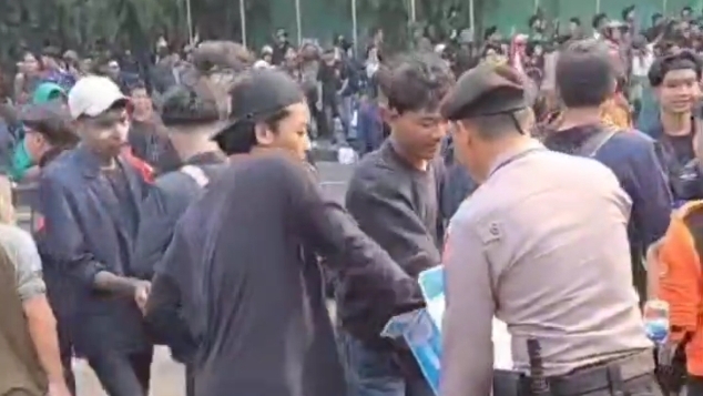 Humanis, Polisi Bagikan Air Pada Massa Aksi Unjuk Rasa di DPR