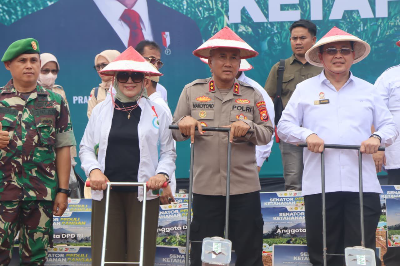 BENGKULU TENGAH – Kapolda Bengkulu Irjen Pol Mardiyono, S.I.K., M.Si., menghadiri kegiatan Senator Peduli Ketahanan Pangan oleh DPD RI di Desa Talang Aling, Kabupaten Bengkulu Tengah. Kegiatan ini dilaksanakan dalam rangka mendukung program ketahanan pangan dan pembangunan berkelanjutan di UPTD Benih Induk Tanaman Pangan Holtikultura dan Pembenihan Perkebunan wilayah di Provinsi Bengkulu. Pada hari Sabtu (27/09/2025)