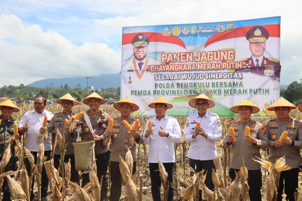 Kapolda Bengkulu Panen Jagung Bhayangkara Merah Putih, Sebagai Wujud Sinergitas Polda Bengkulu bersama Pemda Provinsi Bengkulu dan PT YKB Merah Putih