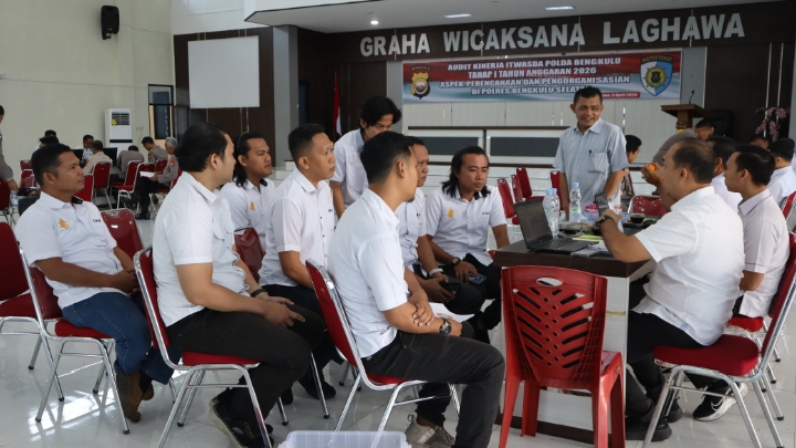 BENGKULU SELATAN – Tim Audit Kinerja Itwasda Polda Bengkulu Tahap I Tahun Anggaran 2026 melakukan pemeriksaan audit kinerja di Polres Bengkulu Selatan, Rabu (08/04/2026) pukul 09.00 WIB di Aula Graha Wicaksana Laghawa.